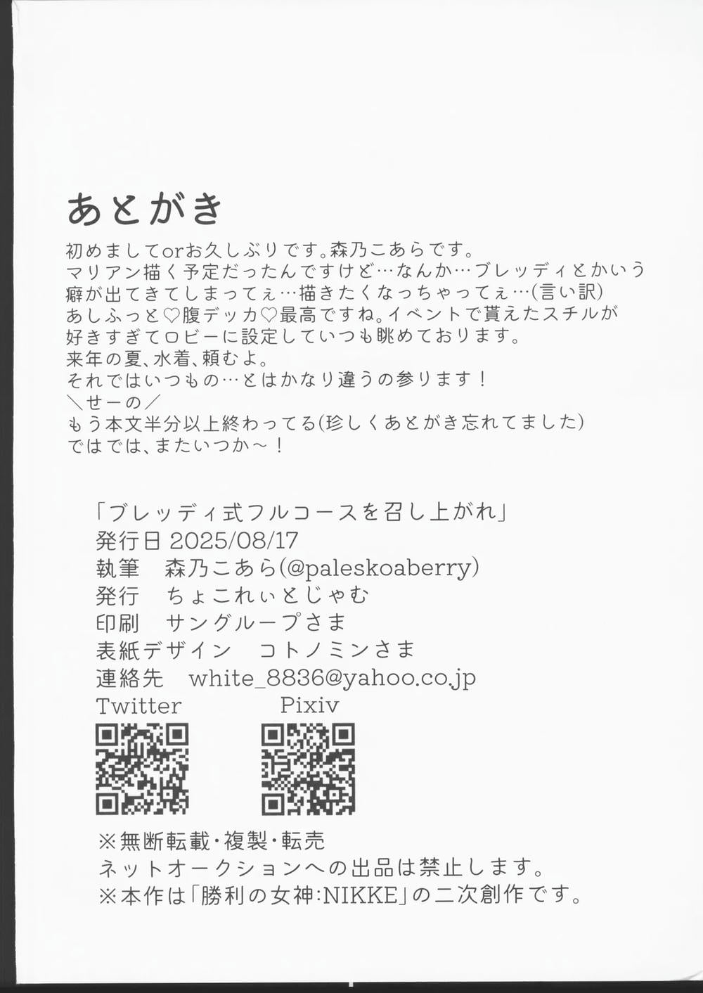 (C106)【巧克力果酱(森野小荒)】享受面包式全套套餐(胜利女神-NIKKE)【中文翻译】